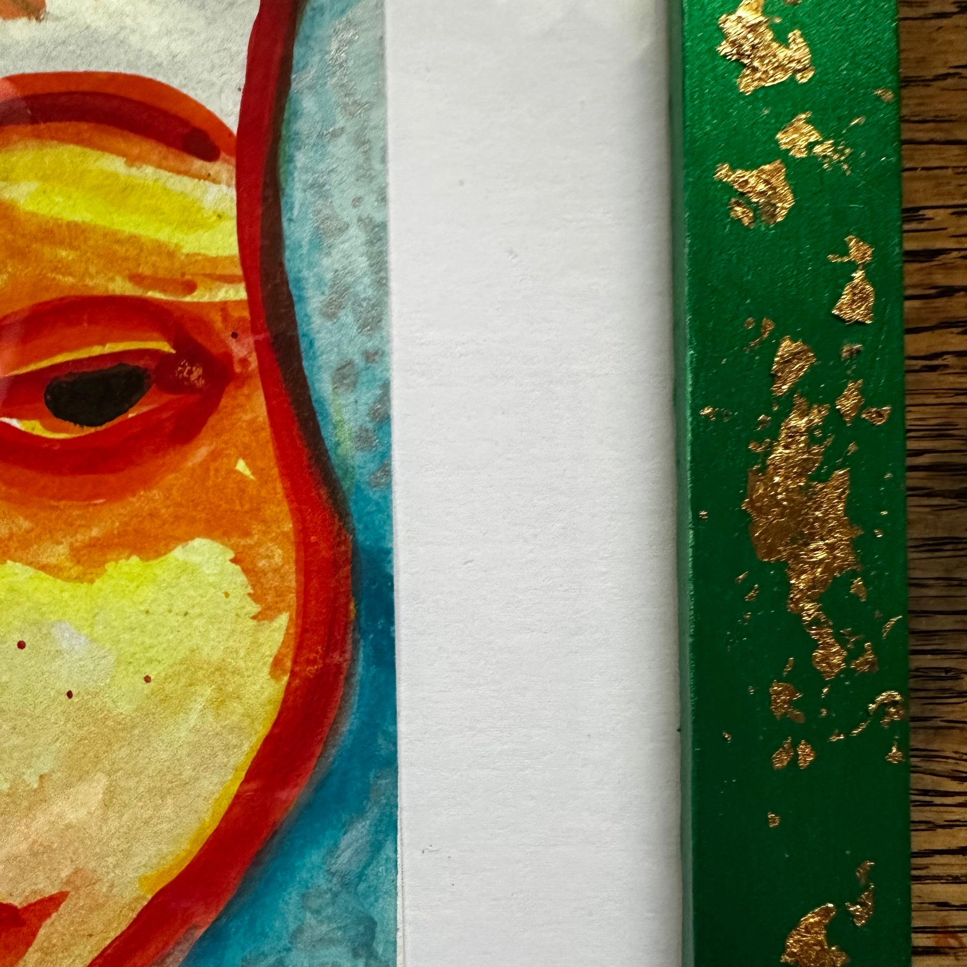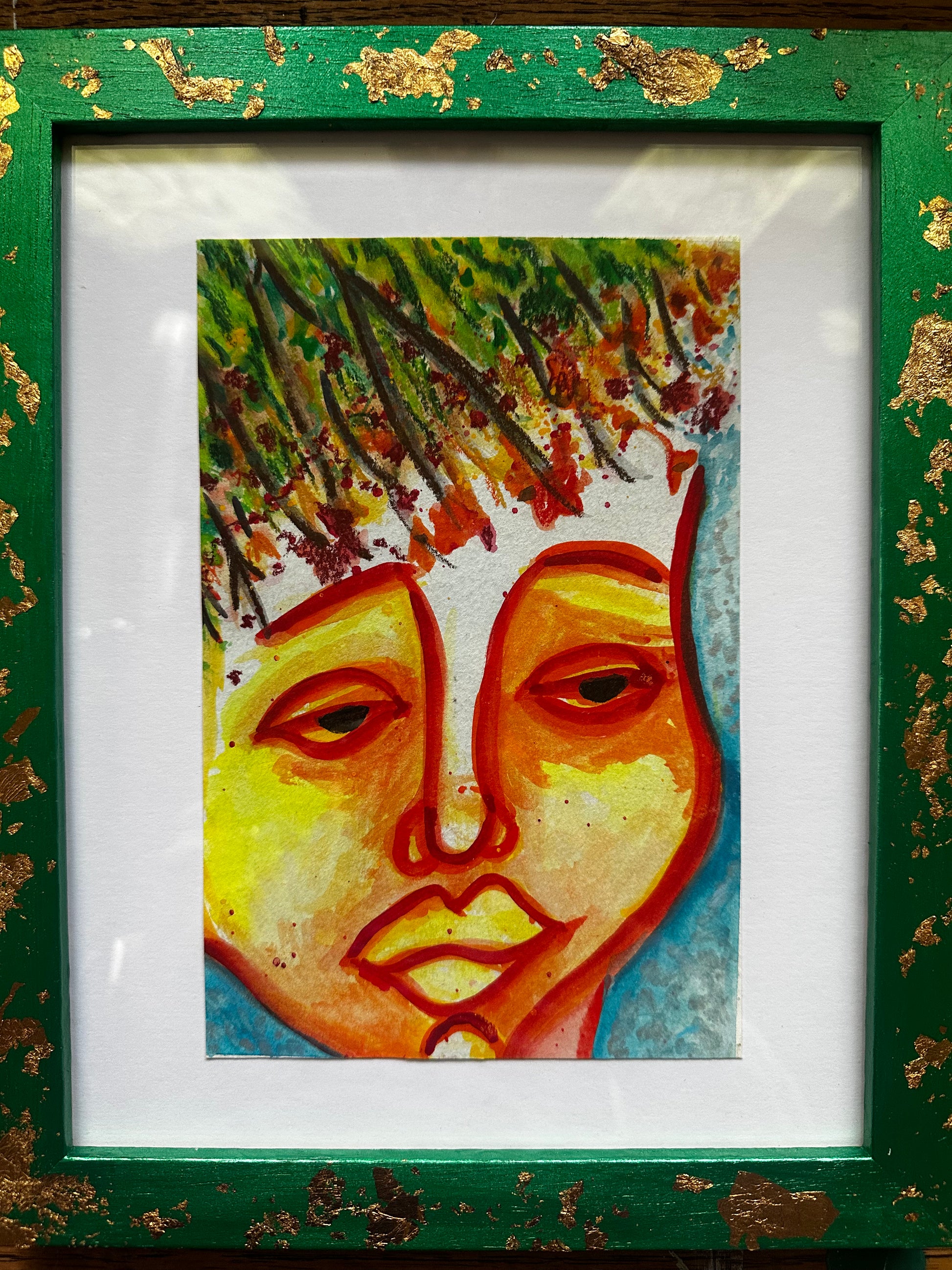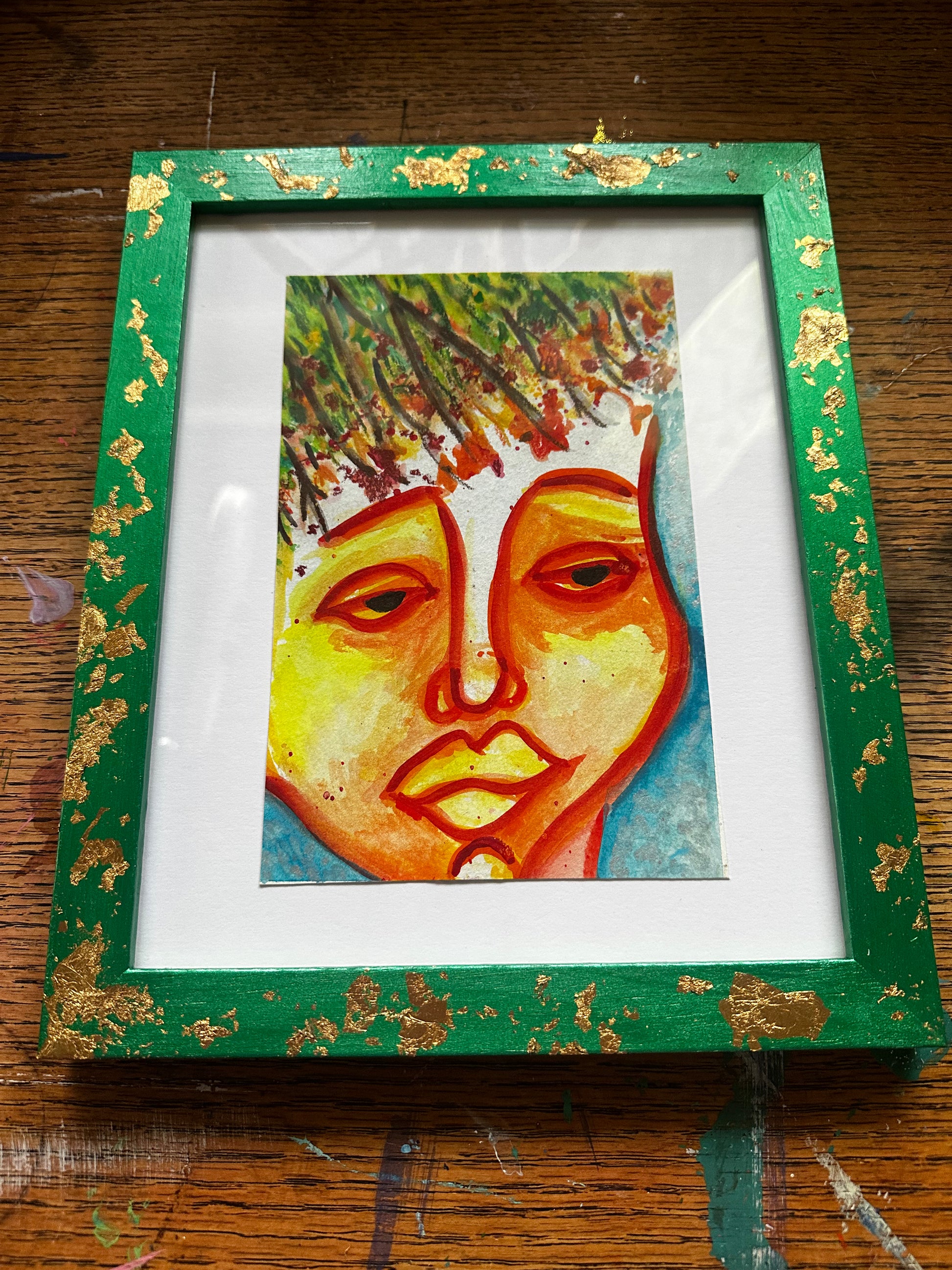 Framed in a hand-painted 8x10 wood frame (metallic green with gold leaf)
